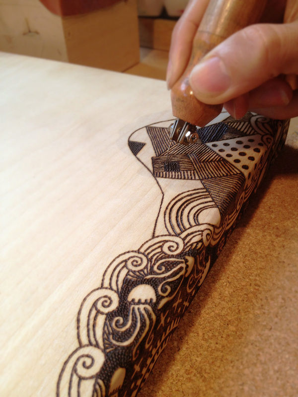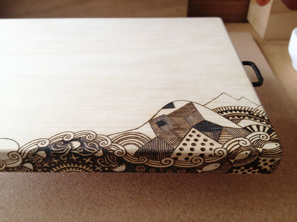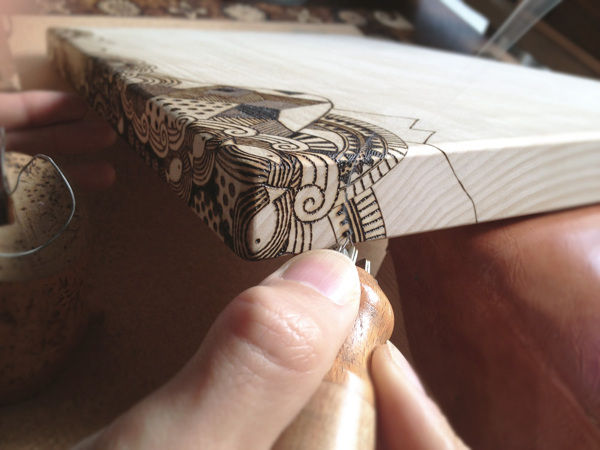 焼き絵とは木材などの表面に焼き目を入れて絵を描く技法の事です。