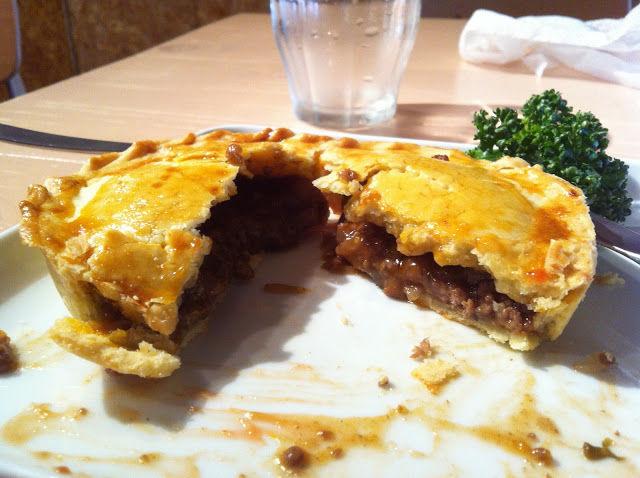 伝統的なミートパイとポテトパイを買ったけど、他にもチリコンカン・パイやタイチキンカレー・パイ、ステーキ&グレービー・パイもあったと思う!