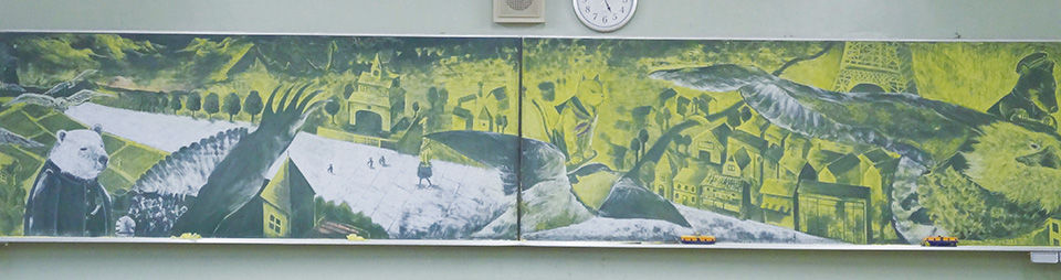 本物のアートみたいだけど、黒板に描かれてるから違う(いずれ消える)んだろうな。