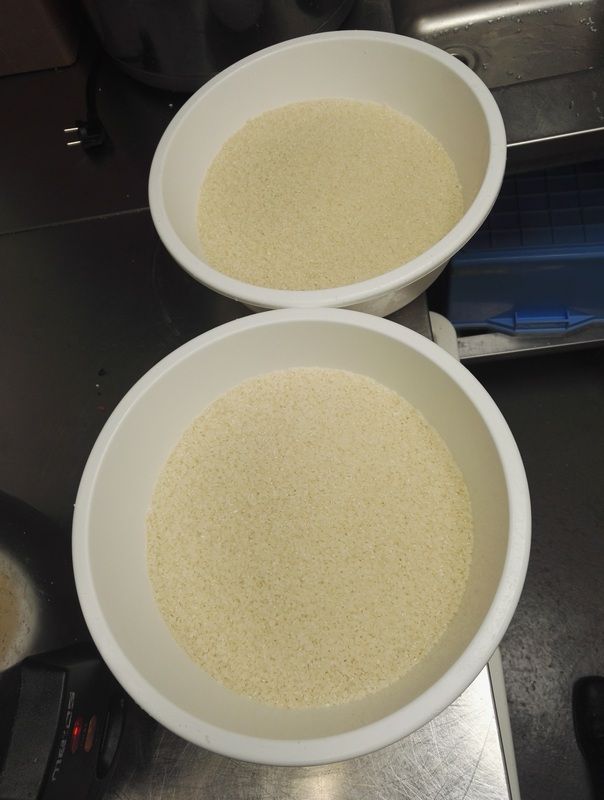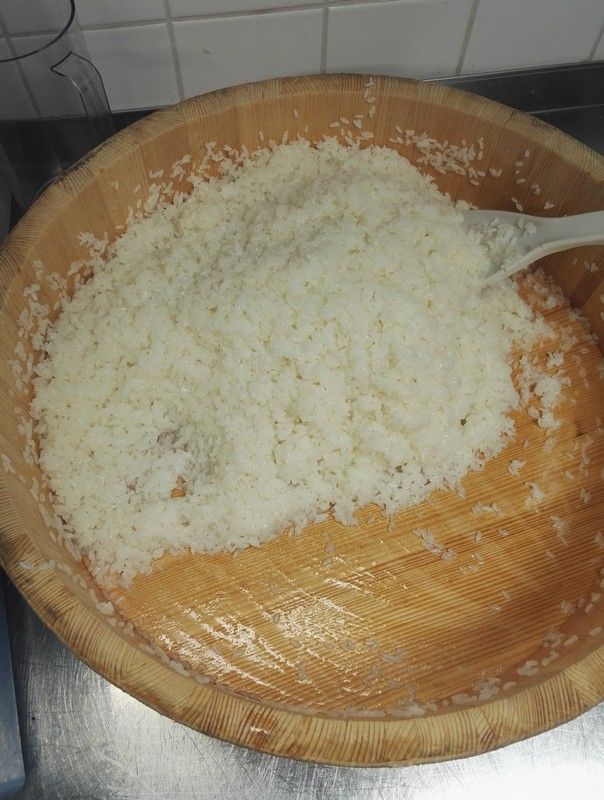 水が濁らなくなるまで洗ってレシピ通りに炊いて寿司酢で味付けする。