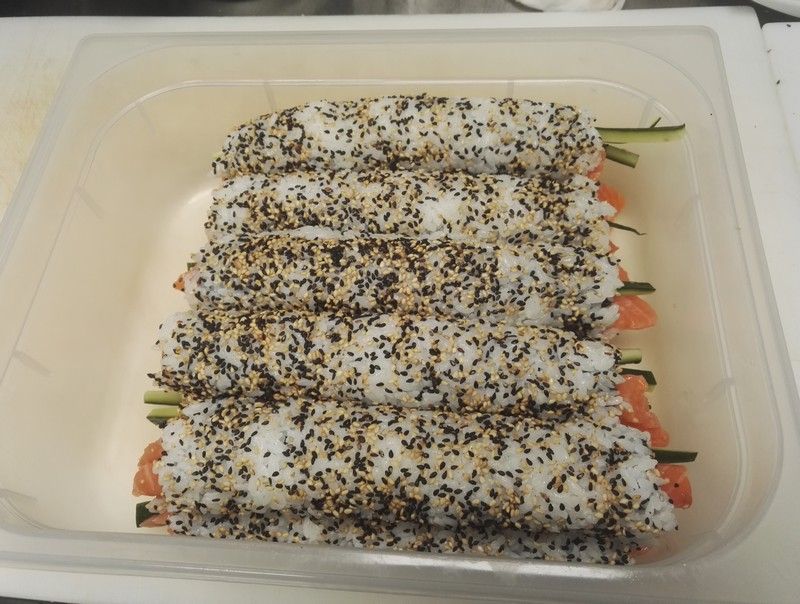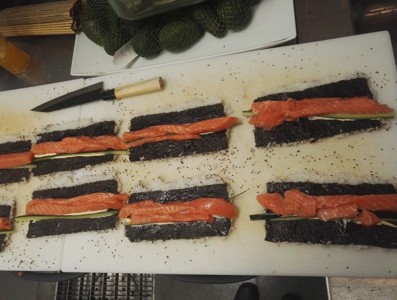 ランチ中には基本的に5~6種類の巻物を作ってるね。
