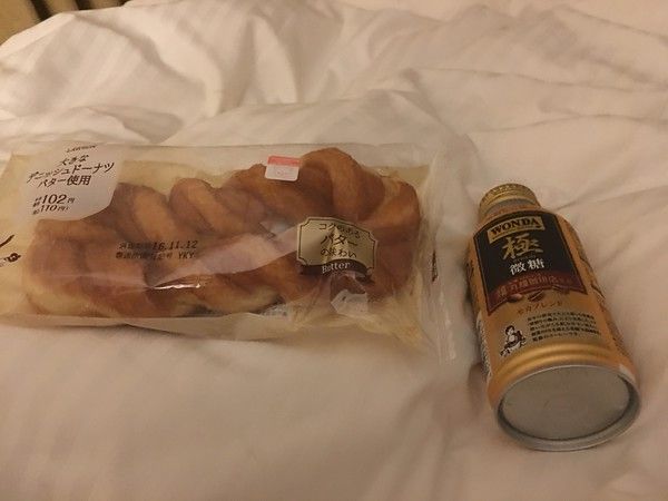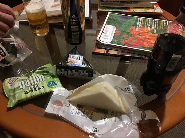 食事の後でホテルに戻って、その途中でローソンによって朝食と夜食をゲット。