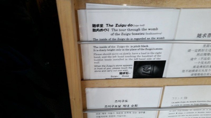 胎内めぐり。寺院の地下にある真っ暗な中に入ってそこにある特別な石を収めた部屋に行くというもの。