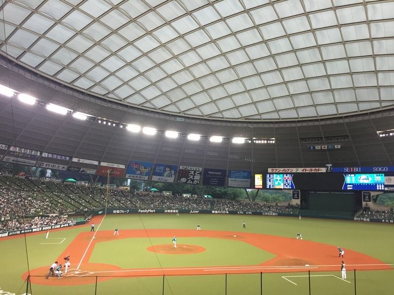 他の東京の試合が豪雨で中止になったから屋内の東京ドームの試合を見に行ったんだ。
