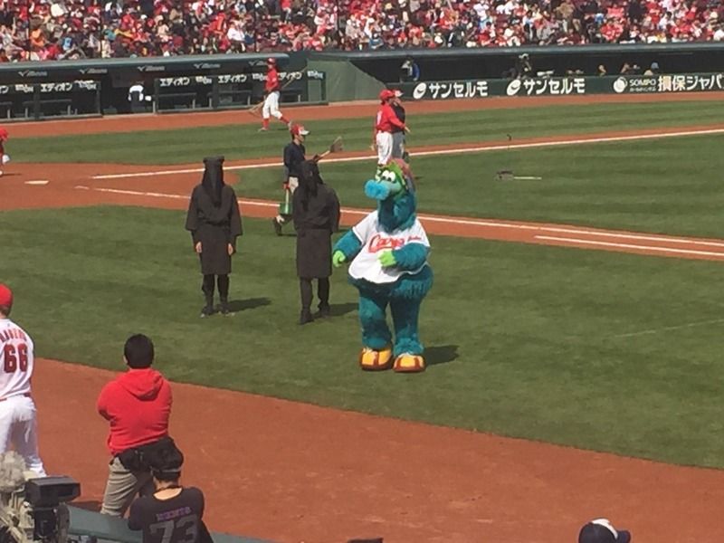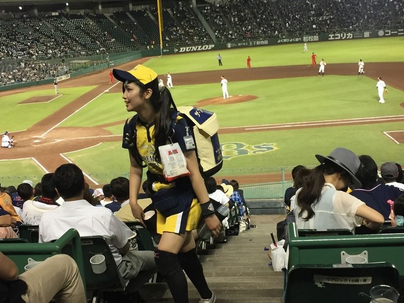 日本の他の球場と同じようにフレンドリーなビール売り(ほとんどが女性)が背中に小さなビール樽を背負って通路を歩きまわってビールを注いでくれる。