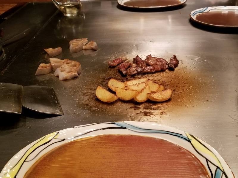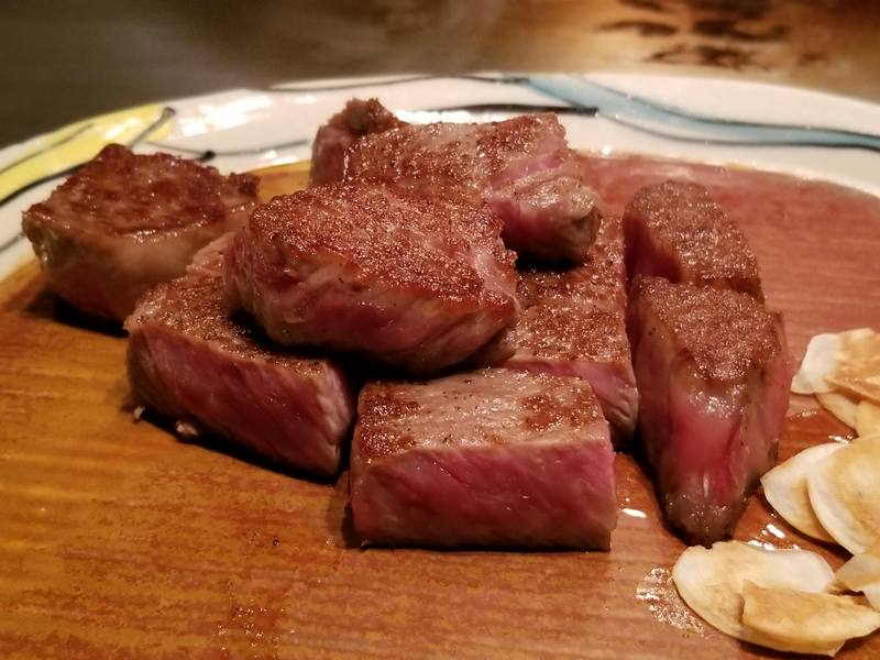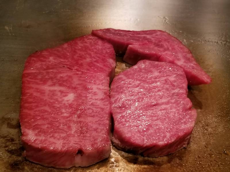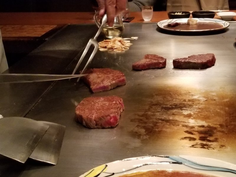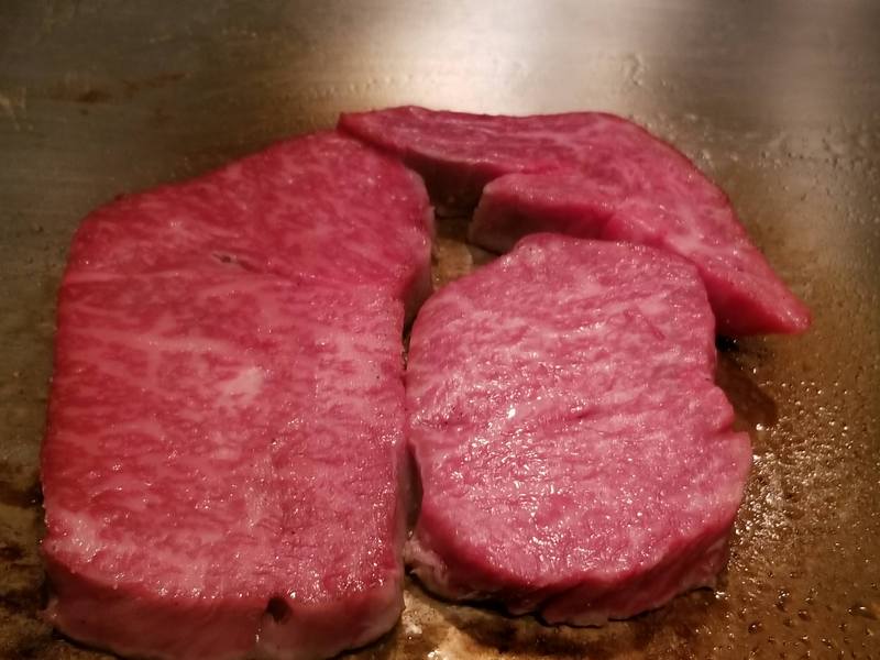1.いつだって始まりは強烈に行くのが最高、ということでこれが生の和牛ステーキ!2.テーブルから見える景色3.前菜と日本酒で開始4.この海老は調理する直前まで生きてた……5.海老と帆立6.美味~7.これは基本的に全て脂。なので食べられるようになるまではかなり長時間調理する必要がある8.全部脂だというのが分かるはず……肉はほとんどない9.テーブルからの眺め10.芋、蓮根、そしてなおも調理中の脂11.完成。一噛みの中に凄い量の風味が詰まっている。12.そしてこれが実際の肉。高級和牛4人前。13.焼くのは完成、これからスライスに入る。14.むむむ……15.完璧な焼き具合。レア和牛ステーキとサイドにガーリックチップ16.義理の母の分もほとんど食べる事になった。自分は20オンス(560g)ステーキ位なら簡単に食べられるんだけど高級和牛は明らかに違ってた。このステーキは10オンス(280g)でも食べるのが大変だったな。1口毎に凄い量の脂が入ってるから小さなステーキでもかなり満足感があった。間違いなく美味しかったけど毎週食べるメニューではないね。image credit:imgur.com