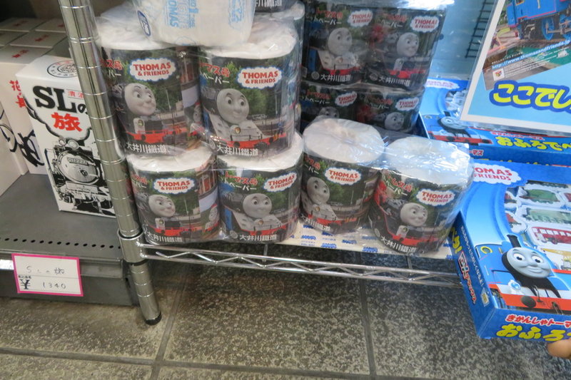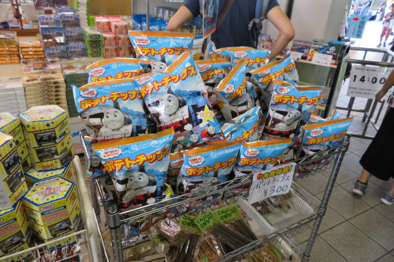 お土産コーナーにはポテトチップからトイレットペーパーまで凡そ想像できる限りのトーマスグッズが売られていた。
