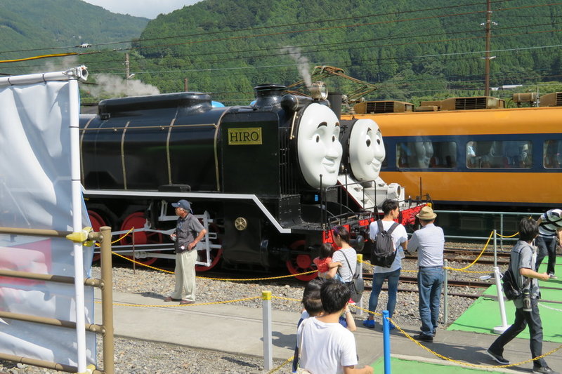トーマスと彼の友人達は千頭駅の特設エリアに鎮座していて500円払えば中に乗り込むことができる。