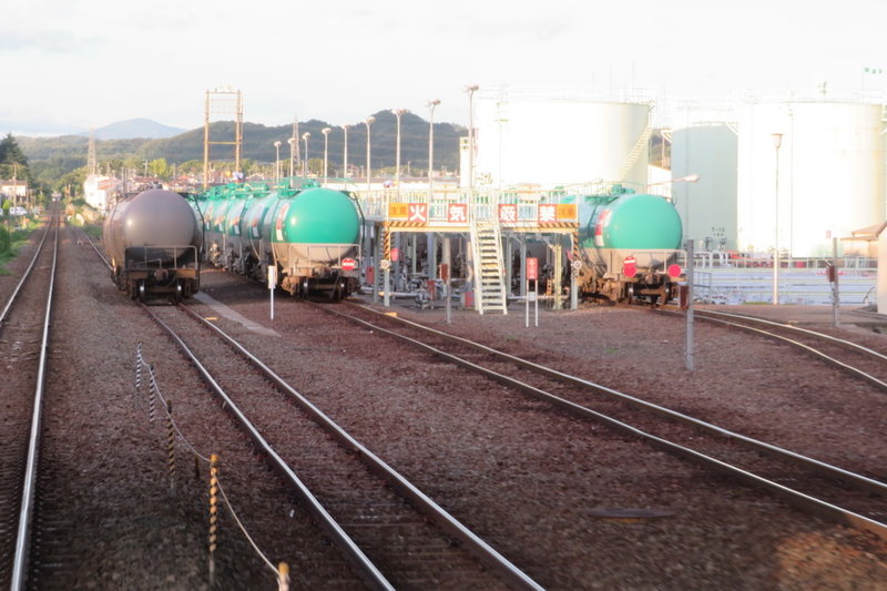 郡山の燃料部門は枝線の1km向こうにあって、自分の乗った列車の後に付いてきたHD300-11が燃料タンクを降ろしていた。