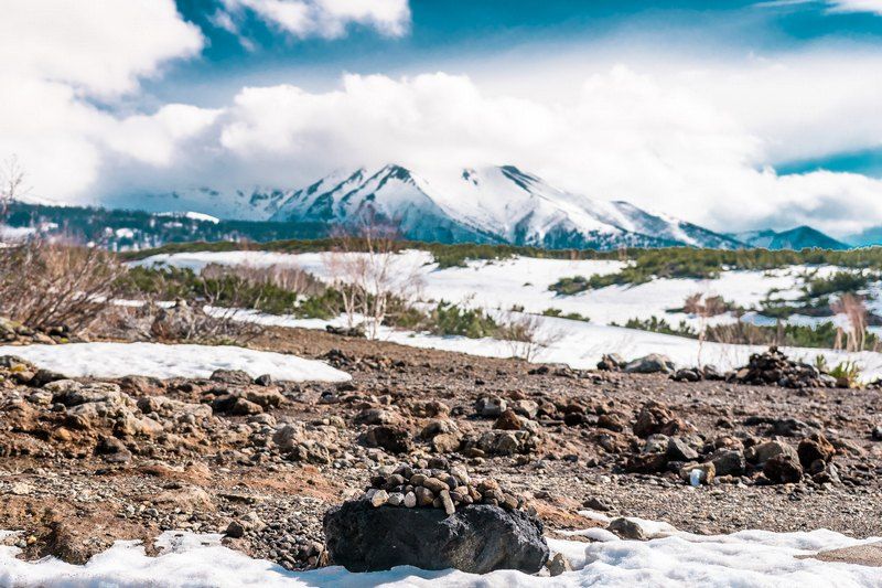 4月5月という事で山にはまだ雪が残っています。