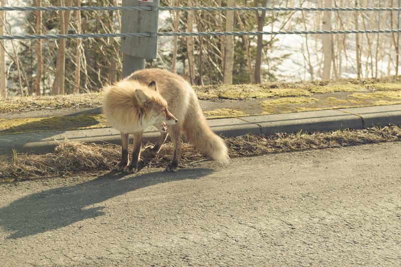 道路で野生の狐と出会うのは珍しい事じゃない。