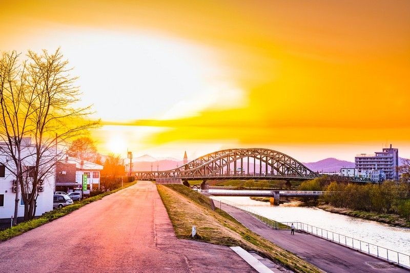 夕日を見るために旭川の旭橋へ。