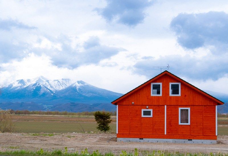 ファーム富田へ行く途中の道は凄く景色が良くて、特に山を背景に撮った赤い家の写真が気に入ってる。