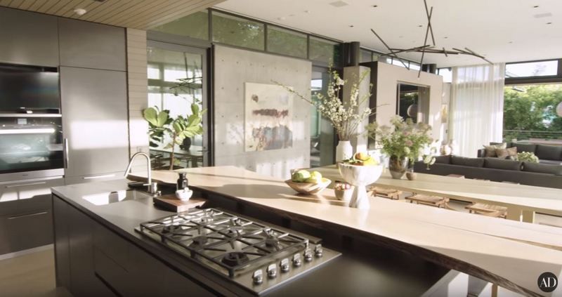 日本にインスパイアされたという家のエントランスには日本の松の木が植えられています家はコンクリ製で建てるのに3年かかったのだとか椅子は1960年代のフランス製でテーブルは日本のドアを天板にしているそうですリビングルームバーベキューエリアの長テーブルは日本のお店にインスパイアを受けて特注したのだとか通常プールは家から少し離して作られるのですが、屋内から水面が見られるようにできるだけ近づけたとの事芝生の隅には楓が植わっています家の中で最も静かな場所にある部屋で、仕事などはここで行うとの事竹藪を見られる場所に置いたベンチ。家全体には合っていないけど気に入っているそうです家にいる時はよく料理をするのでキッチンはリビングと隔絶されないように開放型にしたとの事地下室にあるボウリングレーンimages credit:youtube.com