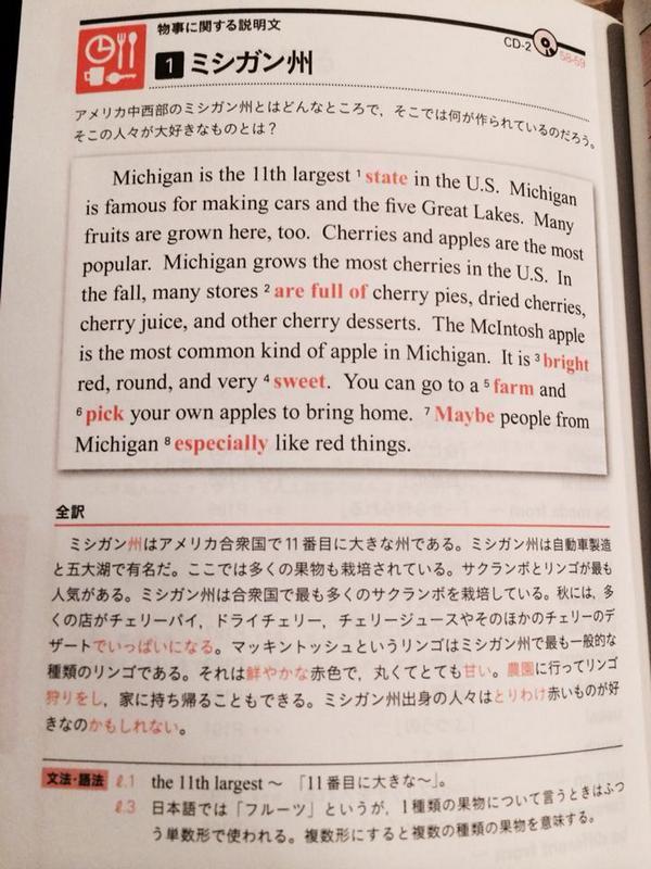 Michigan according to a Japanese high school's English textbook. 🍒🍎🥧✋🏼 pic.twitter.com/bg1ZzCr8gy