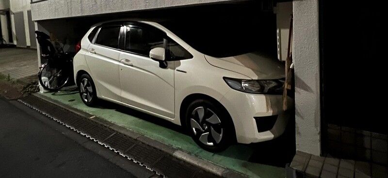 隣人が軽バンをこんな感じで停めてるけど何度か壁にこすって大きな傷がついてる。