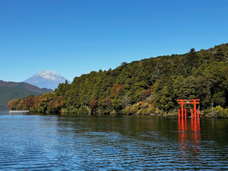 9時半に船に乗り込んで湖畔の鳥居と湖越しに見える富士山の写真を撮った。