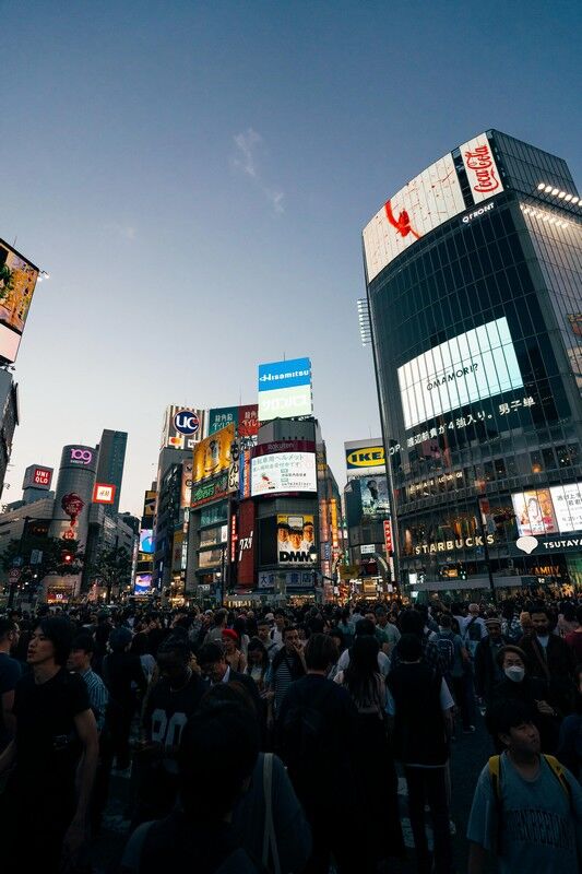 もう少し明るくて構図に人がたくさん入るブルーアワー(※日の出や日没時の空が濃い青になる時間帯)に撮影する方が良いと思う。