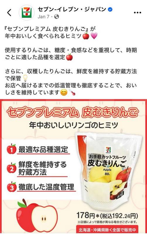 日本のコンビニで売られているカットされたりんごが凄く美味しかったと海外のSNSで紹介されていました。