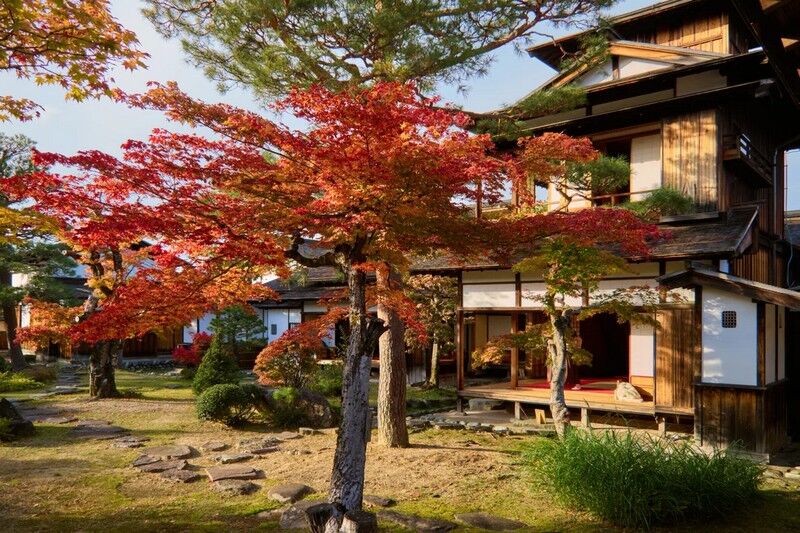 飛騨民俗村は特に秋が美しく、伝統的な日本家屋を見ることができる。