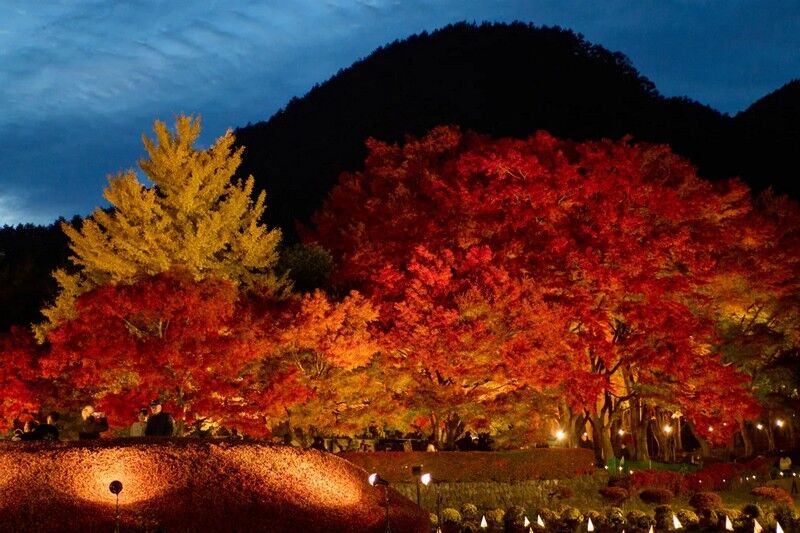 12.河口湖班のもみじ回廊でライトアップされたモミジと銀杏image credit:reddit.com