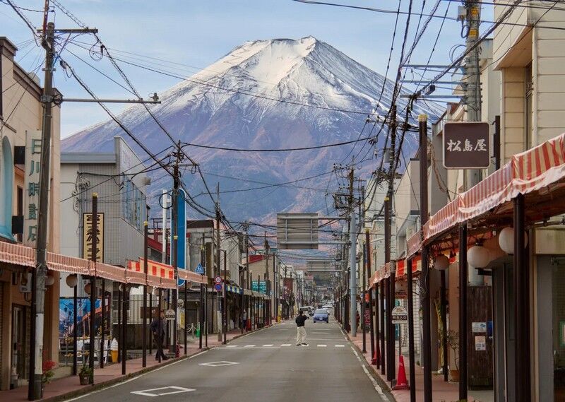 16.富士山から道が続いているような眺めが特徴的な富士吉田市。無骨な街並みが富士山を一層際立たせているimage credit:reddit.com