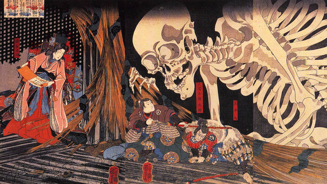 この妖怪は極めてシンプルで、飢餓によって死んだ人々の骨が集まってできた巨大な人骨だ。