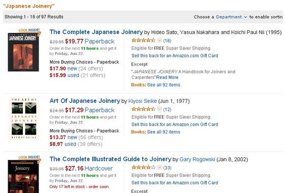 コメントにあるように米Amazonで”Japanese Joinery”で検索してみました。