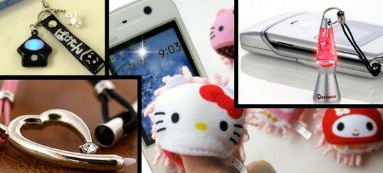 日本の携帯電話にはストラップを通すための穴がつけられており、日本ではこれらを”携帯ストラップ”と呼んでいる。